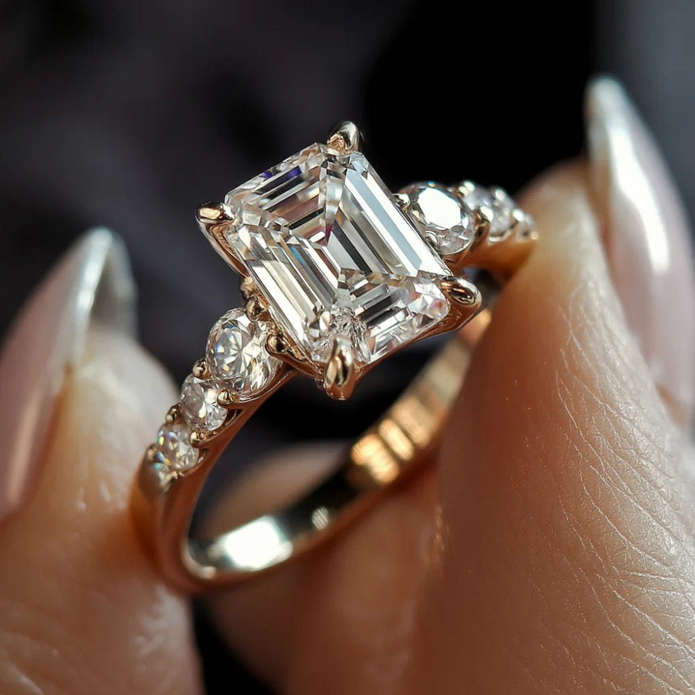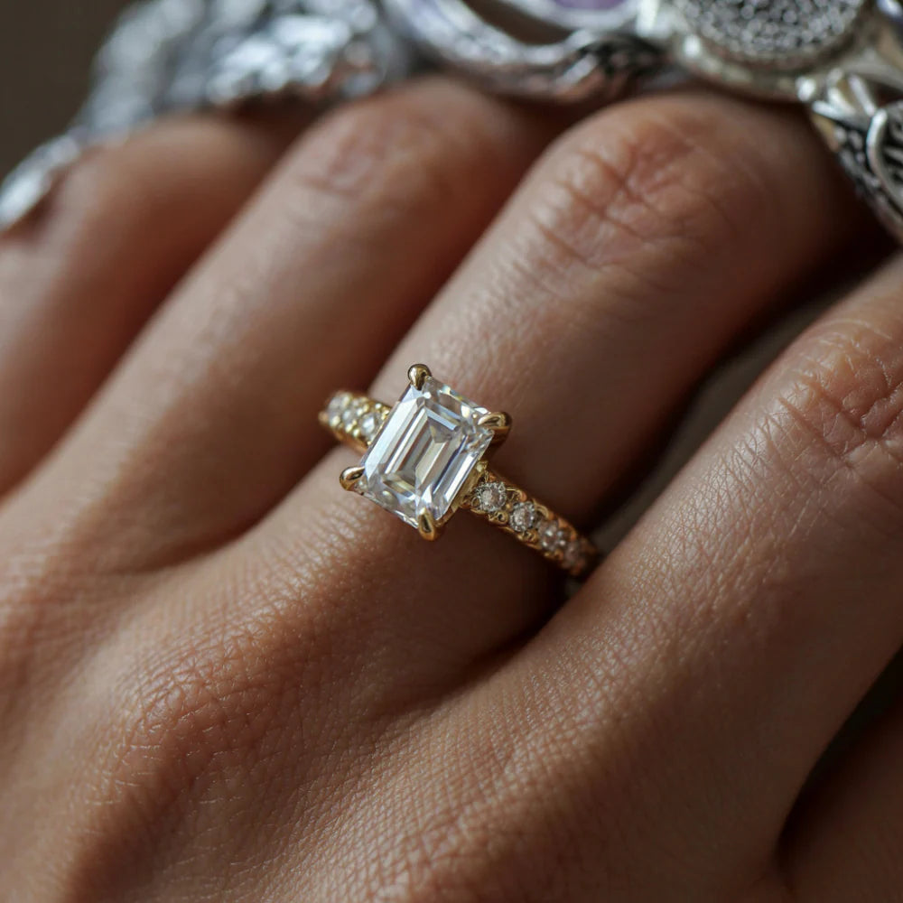 You'll fall head over heels for The Nova Elise. The emerald-cut moissanite is a total showstopper, outshining even the fanciest diamonds.